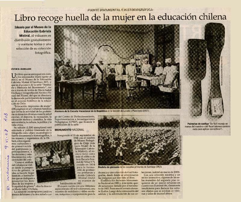 Libro recoge huella de la mujer en la educación chilena [artículo] Víctor M. Mandujano.