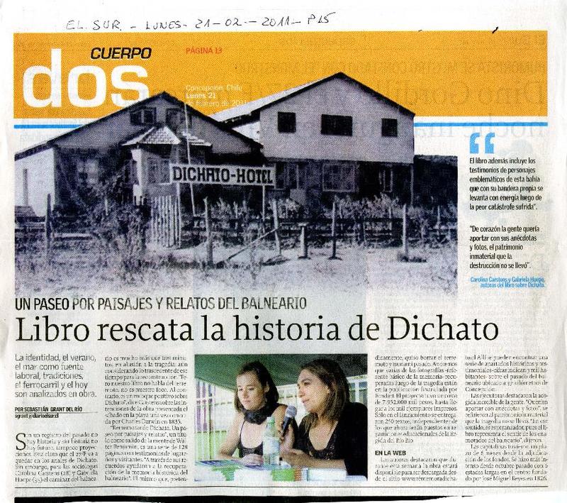 Libro rescata la historia de Dichato [artículo] / Sebastián Grant del Río. El Sur (Diario : Concepión, Chile)-- feb. 21, 2011, p. 15 .