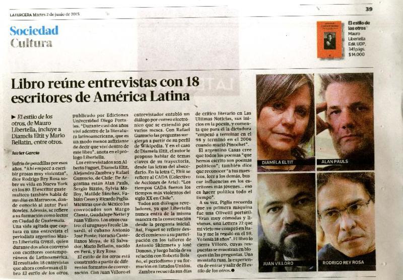 Libro reúne entrevistas con 18 escritores de América Latina [artículo] Javier García.