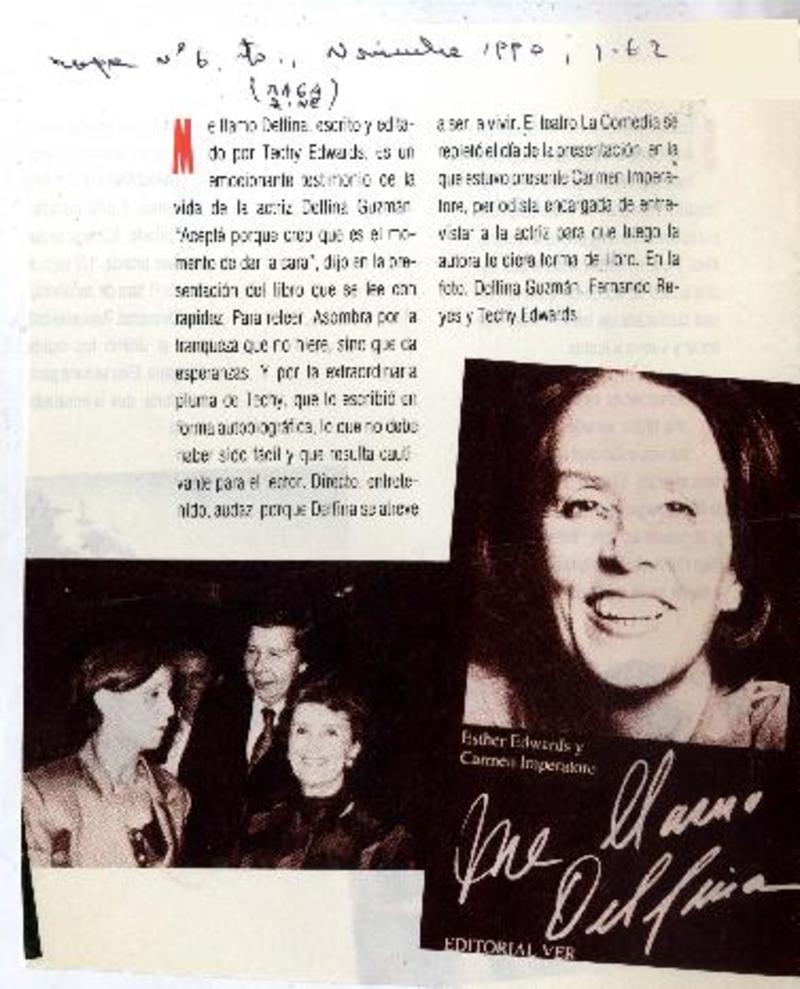 Me llamo Delfina. [artículo] Magazine (Santiago, Chile)-- no. 6 (nov. 1990) p. 62. il. .