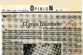 El gran Unamuno [artículo] / Alfonso Calderón. La Nación. -- jun. 22, 1992, p. 14 .