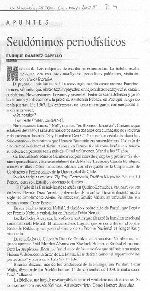 Seudónimos literarios y periodísticos chilenos [artículo] Ilse Sasso Olivares.