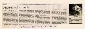Desde el azul mapuche [artículo]/ Roberto Careaga C. La Tercera (Diario: Santiago, Chile) dic. 30, 2006, p. 16 .