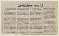 Gabriela fallece en Nueva York [artículo] por Sergio Díaz Contreras.