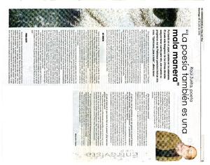 "La poesía también es una mala manera" (entrevista) [artículo]/ Marcelo López. El Observador (Quillota, Chile) jul. 16, 2006, p. 5 .