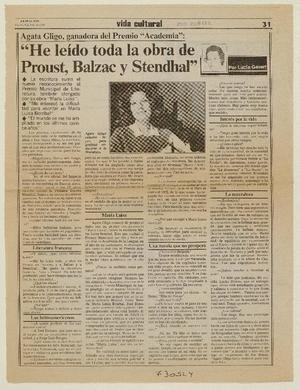 He leído toda la obra de Proust, Balzac y Stendhal (entrevista) [artículo] / Lucía Gevert. La Segunda (diario : Santiago, Chile)-- jul. 5, 1985, p. 31. .