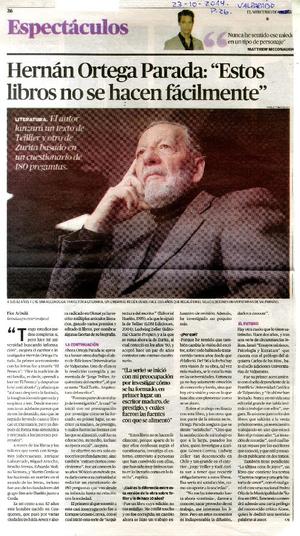 Hernán Ortega Parada: "Estos libros no se hacen fácilmente" [entrevista] [artículo] / Flor Arbulú. El Mercurio (Diario : Valparaíso, Chile)-- oct. 23, 2014, p. 26. .
