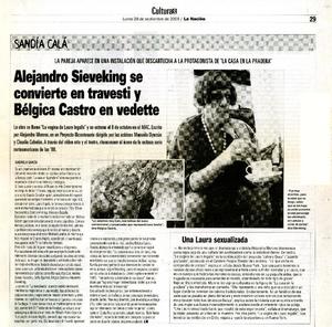 Alejandro Sieveking se convierte en travesti y Bélgica Castro en vedette [artículo] / Javier García. La Nación (Diario : Santiago, Chile)-- sept. 28, 2009, p. 29. .