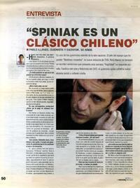 "Spiniak es un clásico chileno" [artículo] / Juan Sharpe. La Nación (Diario : Santiago, Chile)-- jul. 11, 2004, p. 50-51. retr. .