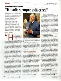 Miguel Castillo Didier "Kavafis siempre está cerca" [artículo] Mario Rodríguez Ordenes