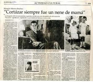 "Cortázar siempre fue un nene de mamá" [artículo] / Carolina Andonie Dracos. El Mercurio (Santiago, Chile)-- jun. 27, 2004, p. C15. retr. .
