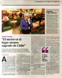 "El metro es el lugar menos sagrado de Chile" [entrevista] [artículo] / Catalina Cabello. La Segunda (Diario : Santiago, Chile)-- ago. 10, 2015, p. 29. .