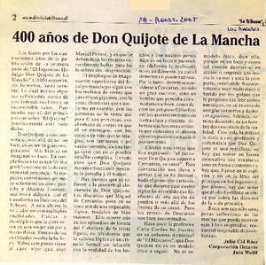 400 años de Don Quijote de Mancha [artículo] / La Tribuna (Diario : Los Angeles, Chile) ago. 18, 2005, p. 2 .