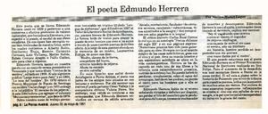 El poeta Edmundo Herrera [artículo] / Marino Muñoz Lagos. La Prensa Austral. -- mayo 23, 1991, p. 8. .