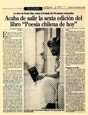 Acaba de salir la sexta edición del libro "Poesía chilena de hoy" [artículo] / Alejandra Gajardo. La Epoca. -- oct. 19, 1993, p. B14 retr. .