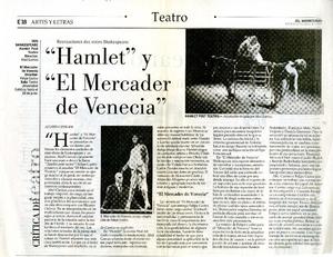 "Hamlet" y "El Mercader de Venecia" [artículo] / Agustín Letelier. El Mercurio (Diario : Santiago, Chile)-- abr. 27, 2008, p. E18. .