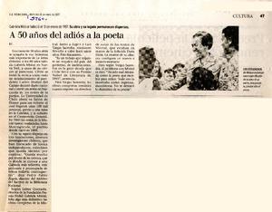 A 50 años del adiós a la poeta [artículo]/ R.C. La Tercera (Diario: Santiago, Chile) ene. 10, 2007, p. 47 .