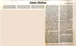 Abate Molina [artículo] / Andrés Gallardo. El Magallanes (Punta Arenas, Chile)-- mar. 14, 2004, p. 3. .