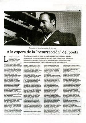 A la espera de la "resurrección"del poeta. [artículo] El Siglo (Diario : Santiago, Chile)-- abr. 5, 2013, p. 19. .