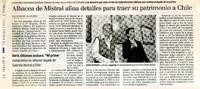 Albacea de Mistral afina detalles para traer su patrimonio a Chile [artículo]/ Elisa Montesinos. La Tercera (Diario: Santiago, Chile) mar. 15, 2007, p. 100 .