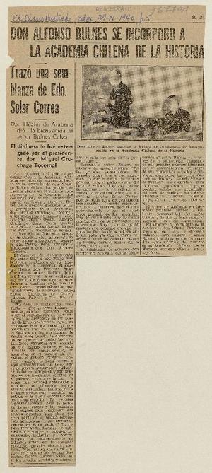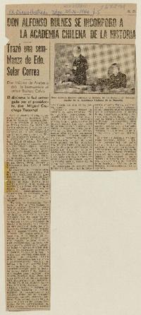 Alfonso Bulnes se incorporó a la Academia Chilena de la Historia. [artículo] El Diario Ilustrado (Santiago, Chile)-- nov. 29, 1940, p. 5. retr. .
