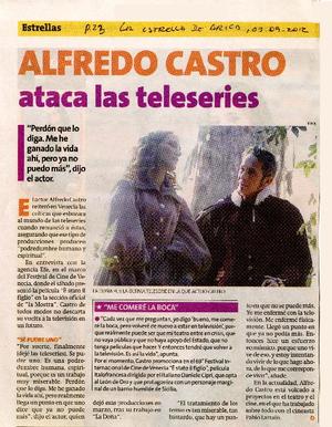 Alfredo Castro ataca las teleseries [artículo] La Estrella (Diario : Arica, Chile)-- sep., 03, 2012, p. 23 .