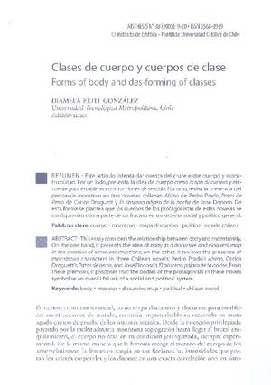 Clases de cuerpo y cuerpos de clase [artículo] / Diamela Eltit González. Aisthesis (Revista : Chile)-- no. 38 (2005) p. 9-20. .