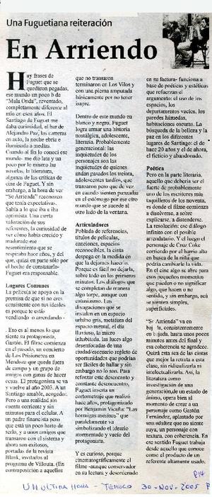 En arriendo [artículo]. UH Ultima Hora (Temuco, Chile) nov. 30, 2005, p. 14 .