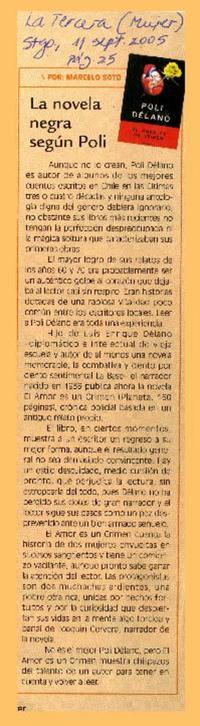 La novela negra según Poli [artículo]/ Marcelo Soto. La Tercera (Diario: Santiago, Chile) sept. 11, 2005, p. 25 .