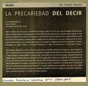 La Precariedad del decir [artículo] Ismael Gavilán.