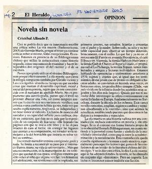 Novela sin novela [artículo] / Cristóbal Alliende P. El Heraldo (Linares, Chile) nov. 17, 2005, p. 2. .