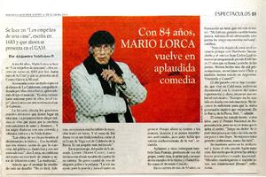 Con 84 años, Mario Lorca vuelve en aplaudida comedia [artículo] Alejandra Valdivieso P.