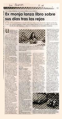 Ex monja lanza libro sobre sus días tras las rejas. [artículo] La Tribuna (Diario : Los Ángeles, Chile)-- ago. 25, 2012, p. 15. .