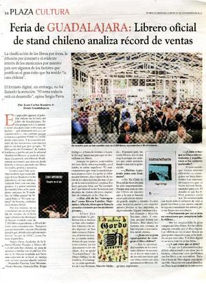 Feria de Guadalajara: Librero oficial de stand chileno analiza récord de ventas [artículo] / Juan Carlos Ramírez F. La Segunda (Diario : Santiago, Chile)-- nov. 27, 2012, p. 34-35 .