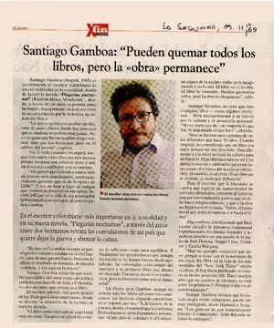 Santiago Gamboa: "Pueden quemar todos los libros, pero la "obra" permanece". [artículo] La Segunda (Diario : Santiago, Chile)-- nov. 09, 2012, p. 69 .