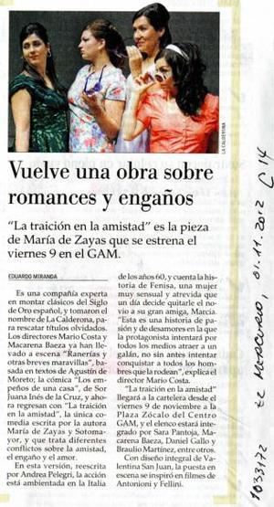 Vuelve una obra sobre romances y engaños [artículo] Eduardo Miranda El Mercurio (Diario : Santiago, Chile)-- nov. 01, 2012, p. C14 .