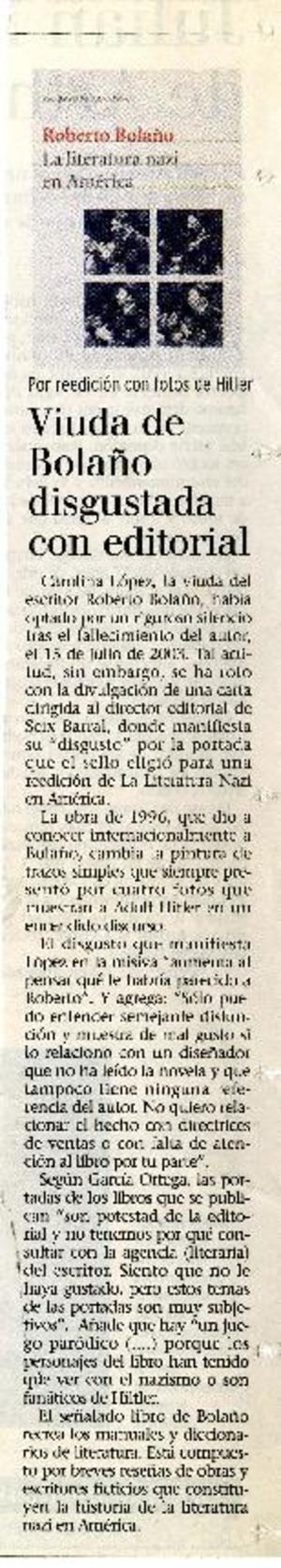 Viudad de Bolaño disgustada con editorial [artículo].