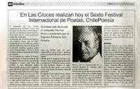 En Las Cruces realizan hoy el sexto festival internacional de poetas, Chilepoesía. [artículo]