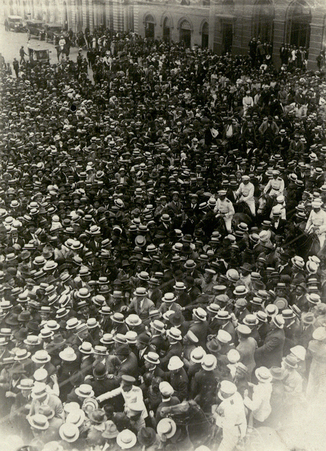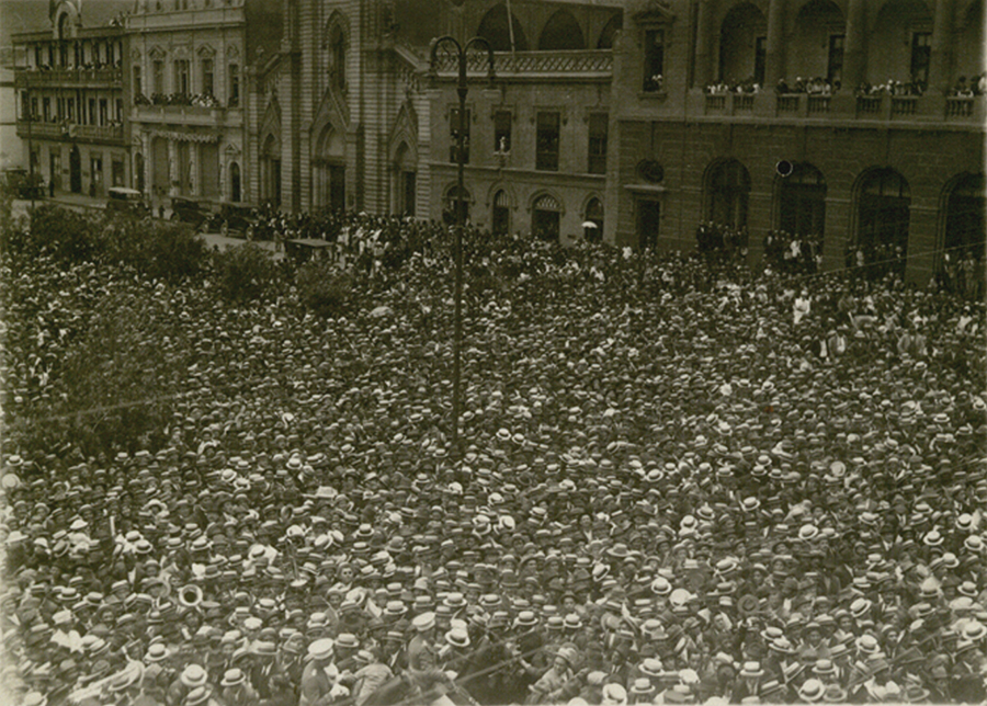 «La concurrencia escuchando los discursos frente a la Intendencia de Antofagasta». Sucesos 949, 2 de diciembre.