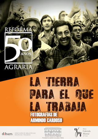 Debido al éxito de la exhibición "La Tierra para el que la trabaja, Fotografías de Armindo Cardoso". El Museo Gabriela Mistral de Vicuña les invita a una charla, hito de cierre de esta exposición, cuyos protagonistas serán el historiador Rodrigo Iribarren Avilés, Director del Museo Histórico Regional “Presidente Gabriel González Videla” de La Serena, y Don Raúl Piña, funcionario de la Corporación de la Reforma Agraria (CORA), quienes nos develarán el relato humano inmerso en este histórico proceso nacional.