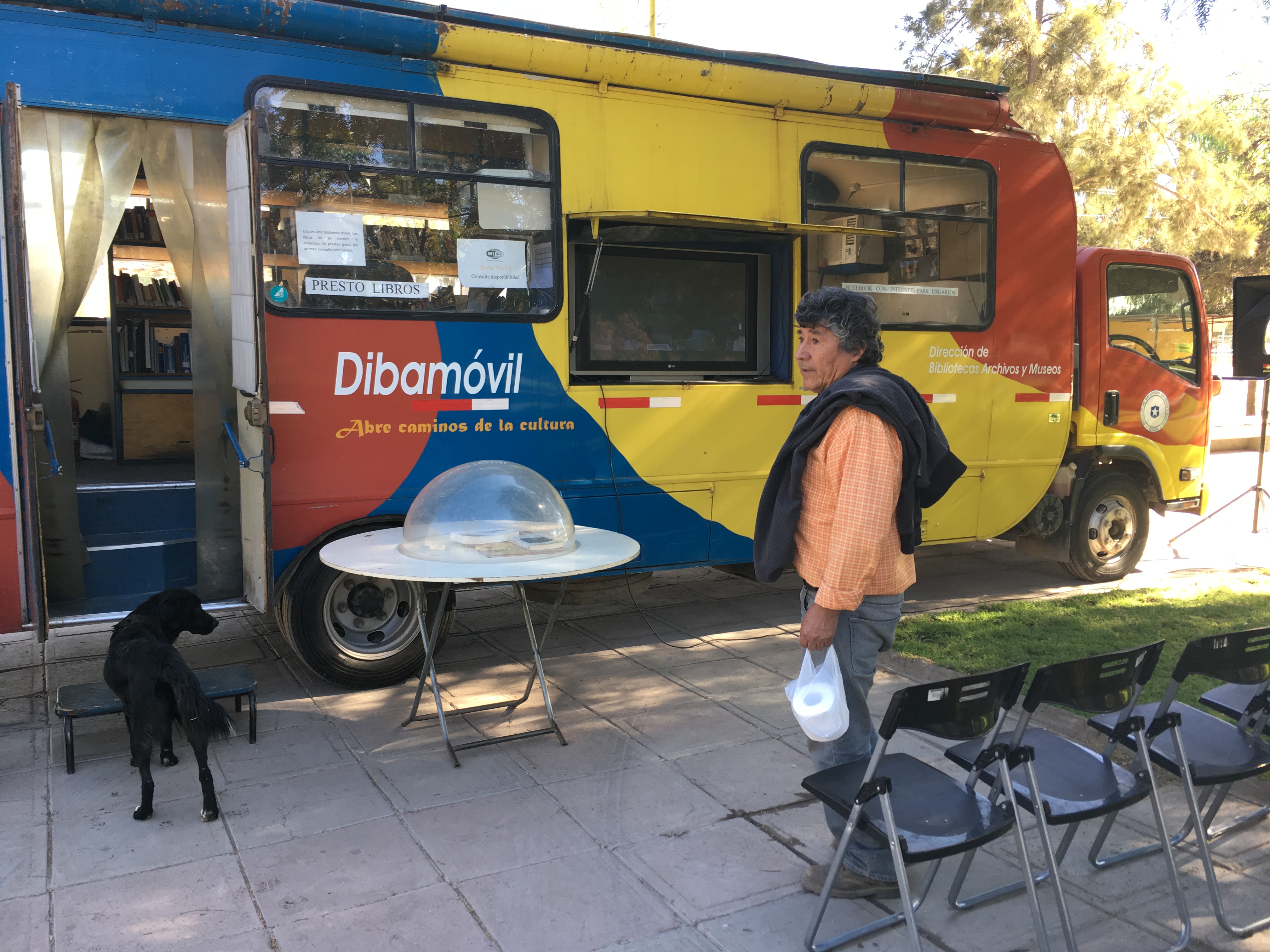 El Museo inició la exhibición de las animaciones el martes 9 en la localidad de El Palqui y miércoles 10 en Huatulame a través de su biblioteca móvil Dibamóvil oportunidad en la que se expuso el material en la plaza de la localidad de Monte Patria y al costado del colegio Huatulame durante la atención de usuarios que hace el bibliomóvil.