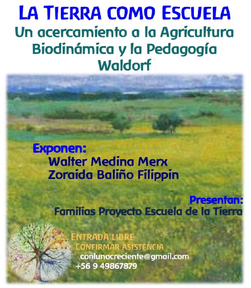 Conversatorio dirigido a toda la comunidad, que propone un acercamiento a la Agricultura Biodinámica y a la Pedagogía Waldorf, el día viernes 17 de noviembre a las 14:30 horas, con los especialistas Walter Medina M. y Zoraida Baliño F.