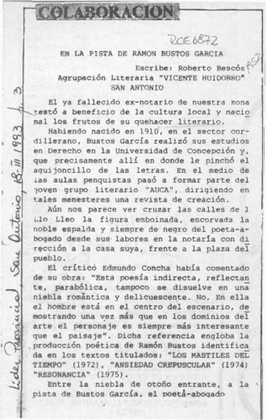 En la pista de Ramón Bustos García [artículo] Roberto Bescós.