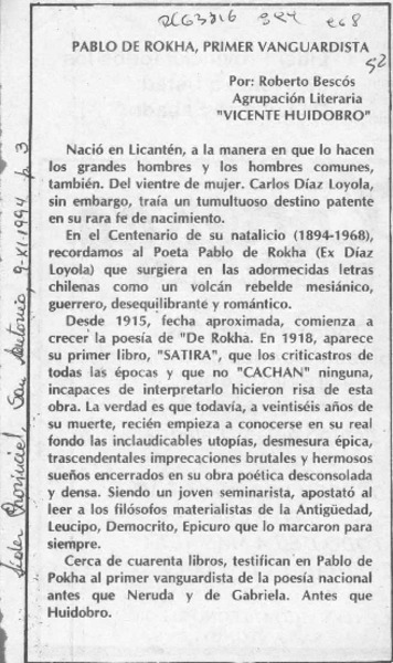 Pablo de Rokha, primer vanguardista [artículo] Roberto Bescós.