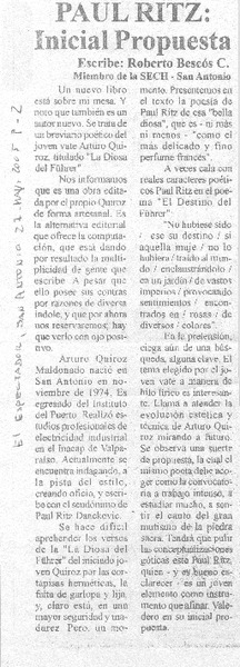 Paul Ritz: inicial propuesta. [artículo] Roberto Bescós C.