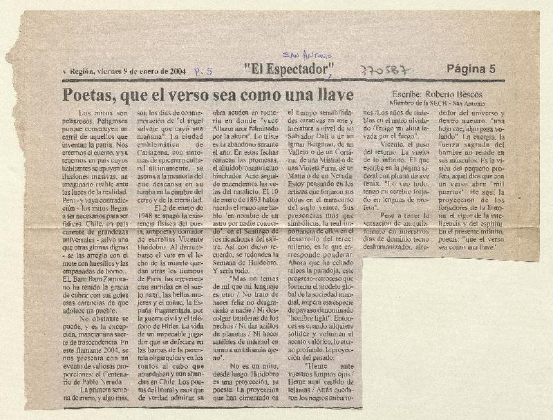 Poetas, que el verso sea como una llave [artículo] Roberto Bescós.