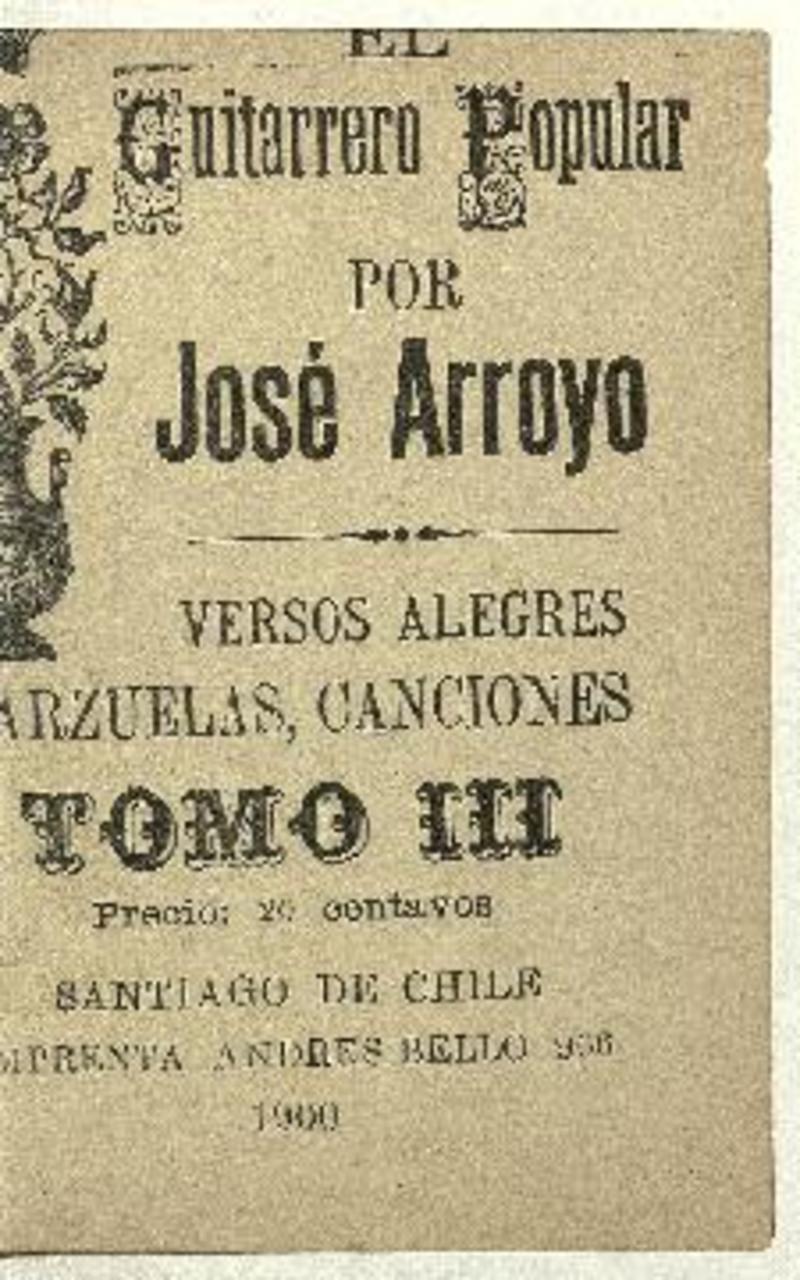 El guitarrero popular : versos alegres, canciones, tonadas : tomo III por José Arroyo.
