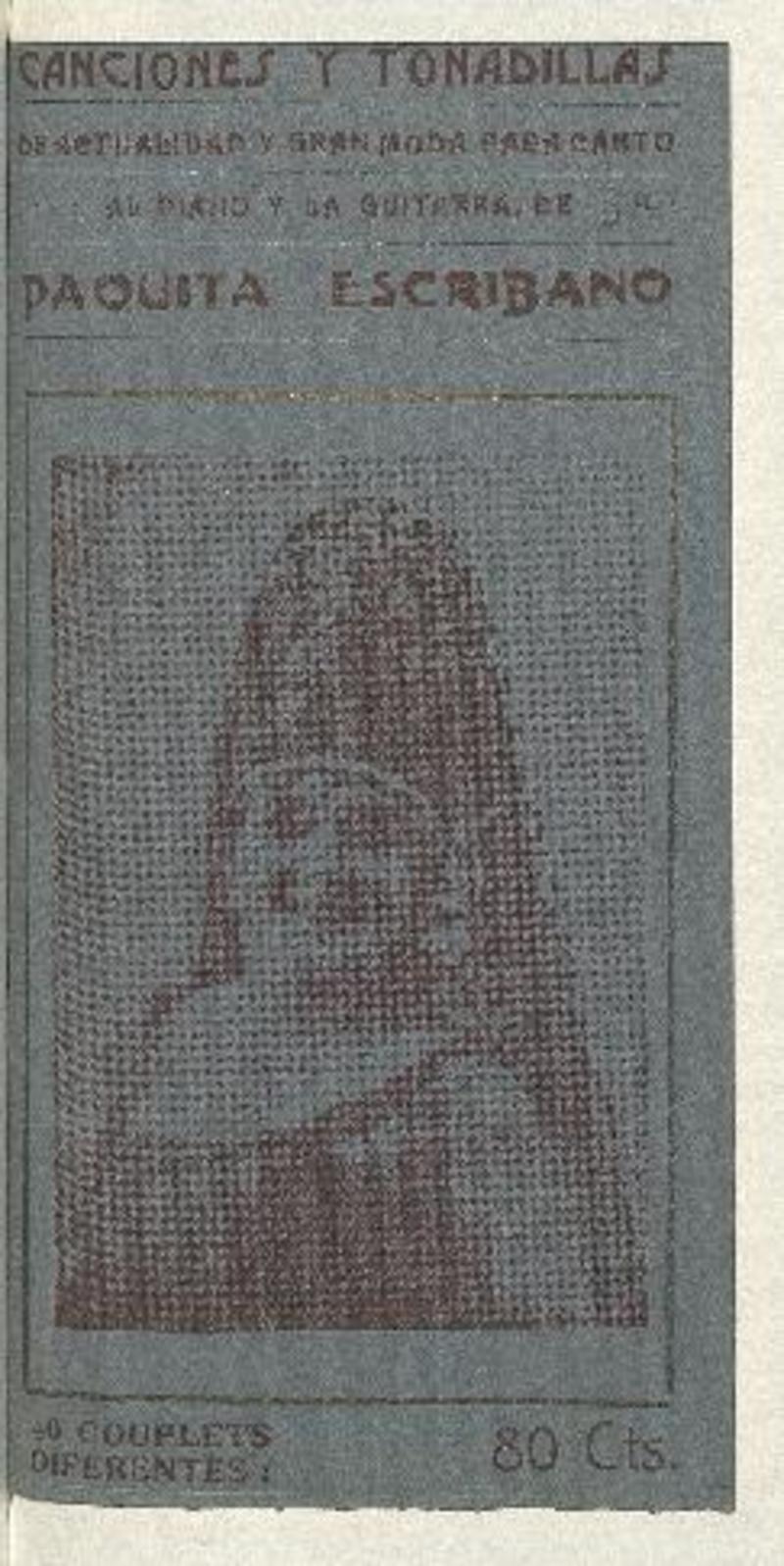Canciones i tonadillas : de más éxito de la genial tonadillera Paquita Escribano.