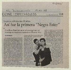 Así fue la primera "Negra Ester" [artículo] / Eduardo Miranda. El Mercurio (Diario : Santiago, Chile)-- dic. 19, 2008, p. C15. .