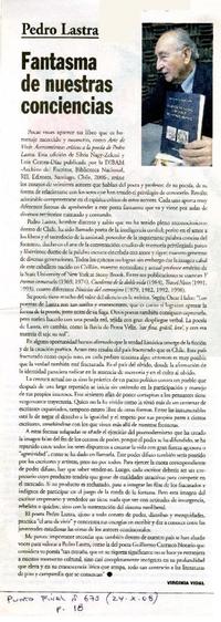 Fantasma de nuestras conciencias [artículo] / Virginia Vidal. Punto final (Revista, Chile)-- no. 673 (oct. 24, 2008) p. 18. .